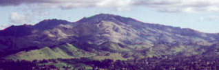Pictured above is a skyline that we see from the freeway on most trips away from the house–the tallest peak is Mt. Diablo, whose once-in-a-blue-moon's snowy summit may have given the Spaniards some problems, but Mt. Diablo does not seem to host any devils. The barely discernible town seen at the foot would be Walnut Creek, one of the usual small towns that cluster at it's feet, like Martinez [where we usually are, as we work here]. At the time of the big quake, we were in "Pleasant Hill" which is crossed into without any fuss at all from Martinez [which Rachman used to give a bit of style to by pronouncing MART-ta-nez, but I fear it's really Mar-TEEN-ez, a very common Spanish surname]. Martinez's only claim to fame is that it was the home of conservationist, John Muir, a Scotsman, who immigrated over here around the turn of the century.