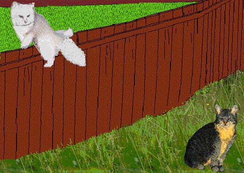 Signs & PortentsChapter 16 Men Make Them Fires on the Hearth![]() My name is Catwood. With a name like that, I suppose you already know who I am. Catwood is my human name, of course, we of the feline race also have our true names. But even if I told you my true name, you wouldn't be able to pronounce it, so just think of me as Catwood, or Catwood O'Leary, as that fiend who calls himself a cat doctor calls me. The O'Learys are my family, of course, I'm proud of that, picked them out myself. They're good people. It's just that you can never trust those guys in the white coats who call themselves cat doctors, if you know what I mean. The second they get a chance, they're jabbing a guy with this and poking him with that and that's just the least of it. They're pretty slick customers. They can subvert and hoodwink a man's own family right in front of his eyes! I remember that time I got that strange bad feeling a few years back. The next thing I knew—whammo! Miri had dumped me right on a table in front of that guy. Poke and pry, poke and pry, as if I didn't feel rotten enough. I told him straight out, "to but out." If you think that stopped him, you can think again, and me, at anything but my best. I had to let him have one right across the poker and prier. Then they ganged up on me, he had this other one in the back, and they wrestled me to the table. Then he did something really bizarre, but that wasn't the end of it. He played some weird number on the O'Learys, and they started poking those damned pills down my gullet every chance they got. It was over a week before I had them back to normal. How did I get on a subject like that? Phah! The least said the better, If you know what I mean. Oh yes, I remember now. I've been picking up on a different kind of strange bad feeling lately and it worries me. But it's not like the other kind at all, kind of in a different class completely, if you know what I mean. But it's big and it's bad, and it's kind of every place at once, if you know what I mean. The O'Learys can be so dense sometimes, I just don't know how I can get through to them on a complicated subject like this. You try talking to Miri and she listens, then she says something idiotic and puts some liver on your plate. Carl's not much better and he's getting hard to get hold of now that he's older. I've tried to get through to Robert, but the guy just seems to be out-to-lunch. I thought I was reaching him the other evening, but then he just sort of went somewhere and forgot the whole thing after I'd purred myself nearly hoarse. Well, that's the kind of bind I'm in, if you know what I mean. I don't think this is the kind of thing you should ignore, if you know what I mean. It's about time for my constitutional now, so I'll just check it out again. I'd better check out that machine, they brought here too. Did you see the size of that thing? But it doesn't fool me, it's just bigger than the other car, but it's a car all right. I can tell by the smell. And it's dangerous, I wouldn't go near it, but with the family and Robert going into it all the time, I'd better see what it's been up to lately. They tried to get me inside the thing, but I told them "no way." That contraption is nothing to play around with, I know this by feline instinct, you see. Humans find those contraptions fascinating and there's usually no stopping them. Well, I always go down the backstairs, you just hop through the window here over the sink (Miri always leaves it open just for that reason) onto the porch and down you go. You can use the door too, if you like, but its faster this way. "Hmmmm!" Well, I don't feel it now. Let's hope it's taken a hike, or something, and is gone for good. God! There's Jessup, he's a real sweet guy. I'll just go over and say hello, he always has a good word for a guy. Sometimes he has a worthwhile snack too, he's real thoughtful that way. What's he doing? Digging in the ground? God, that's fascinating! Trust old Jessup to come up with something real interesting to do. "Hi, Farlan! How's it going?" (Stone deaf, you know, but he radiates like a house afire. Lot's of the old prana as the Hindus would say.) Nothing like a little digging in the earth to straighten out your head. God, he thinks he's building a bomb shelter. Well, it's a wonderful excuse to dig in the ground and that's the main thing. Jessup's got this "only one" thing in his head, but he's a real swell guy, anyway. I really should spend more time with him, but a man like myself has a busy schedule. Ten humans in this territory and one cat, if you know what I mean. Damn, here comes that stupid Shirley from next door! Well, too late, she's already seen me. Jessup will "kitty, kitty" her until she comes over anyway. Might as well go meet her. "Hi, Shirl, how's the girl?" "You won't really go!" "Hell, I won't! If if weren't for Carl and Miri, I'd be long gone right now." (I told her yesterday that this awful feeling, I was telling you about, was getting to be too much, and that I was leaving and she ought to do the same.) "You won't!" "Will!" (O God, why argue? She's the original brainless nincompoop and determined to have her ![]() own way. She's real sneaky too, always tries hard to find a way to get in the last word.) But she feels it too, I can tell. She just tries to pretend it doesn't bother her. Naturally, she would be the first one under the bed if it really broke loose. Ha! Speak of the devil, it's back! Feel how it creeps and slides along the ground? It chills your spine doesn't it? It's wholly and completely "other," neither human or feline, or anything else in the known world that I've ever felt. No smell to it, but it comes and spreads out everywhere. Brace yourself, it can crawl right into your bones and gnaw at them when it's bad like this. Look at that! It's especially raw and strong today and even Shirley is starting to swing her tail, she's giving up trying to pretend she's not nervous about it. Uh huh, and she's h