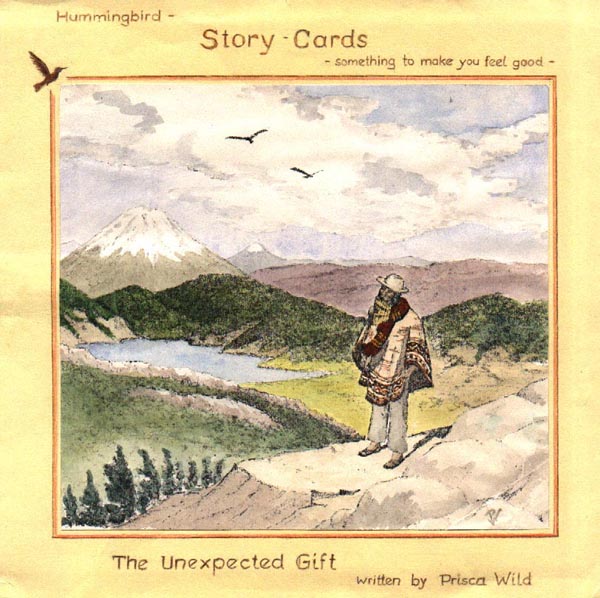 The Unexpected Gift—Prisca Wild's LegacyThe letters and stories that Prisca and Valentin Wild sent us while they were living in Ecuador in the late 1980's, made a lasting and vivid impression upon us. At that time, Prisca and Valentin wrote that they already felt a part of the Undiscovered Worlds Press. Below is a piece we wrote about Prisca and Valentin in the UWP newsletter in September 1989:The Wilds of Ecuador have come to Undiscovered Worlds. That can be taken in different ways, all of them valid. The Wilds are Prisca and Valentin Wild, who live in a remote region in Ecuador that does not even appear on our atlas: Quevedo/Los Rios. Prisca says that it takes a full month for mail to reach their isolated area. The pair collaborate in fascinating letters and have now submitted an article, Silent Voices Concealed in Reality, for the magazine, as well as several children's stories. In their last communication, they say they are already a part of our publishing enterprise—and welcome aboard, Valentin and Prisca. We look forward to their continued participation in Undiscovered Worlds. One of the surprises from them was a drawing containing such vital animated little "creatures" who so charmed us, that we wrote hoping for more. We have done a computer scan to share this in a small way with you, but you must realize that full justice cannot be done, nor of course the photos by which they introduce themselves and show their "first home" in Ecuador. In September 1989, Prisca and Valentin sent us a little home-made book called, The Unexpected Gift. We were utterly charmed by this little book, and we have treasured and kept it safe over the years. Now at last we are pleased to be able to put it online. We hope, that later, we will be able to put more of Prisca's writings on our website—her legacy, as a writer and artist to us all. Prisca and Valentin were always coming up with good ideas as to how we could develop Undiscovered Worlds Press. One intriguing idea was to produce little Hummingbird Story Cards, each containing a story that would make the reader feel good. Here below is the little book Prisca and Valentin sent us to demonstrate their idea: ![]() This is a little story about a young boy who felt humiliated because he was an Indio, but later on discovered his ancient heritage and his rightful place in the community of mankind, comes to you from: The Unexpected GiftIn a small town in the mountainous Andean region of Ecuador, which is called the Sierra, you will find a modest little church with whitewashed walls. It has no elaborate wood-carvings and no gilded altar-pieces like the great cathedrals in the capital, yet it has a beautiful old organ.There it was where Padre Anselmo used to exercise with his children's choir the hymns and the liturgy for the Sunday service, accompanying them on the instrument. He chose his young singers from the town's schoolchildren as well as from those living in the small neighbouring villages where he sometimes went to say Mass or to baptize a newborn baby. Padre Anselmo came from Italy and had arrived in Ecuador as a young priest. The order to which he belonged had established schools all over the country. Many years ago, when the town was barely more than a village, there were just a few children with Padre Anselmo as their only teacher. But the town had grown bigger and needed a larger school. New teachers came, as well as younger priests. They were full of modern ideas and they thought Padre Anselmo rather old-fashioned and treated him with condescension. He still used to wear his faded soutane with its frayed hems, and the ideas the others talked about so frequently held no attraction for him. As he grew older, he retired more and more, devoting his time to his love of music, which he had in common with many other Italians. Towards one of his choir-boys Padre Anselmo was directing his special attention. His name was Joaquin and he came from a tiny village high up in the mountains. Like in most parts of the countryside, people there still observed the old traditions of their Indian heritage, and when Joaquin for the first time went upstairs to the gallery, where the choir gathered for its exercises, the children from town giggled and watched him curiously. He blushed, suddenly feeling ashamed because he looked different from the others. He was wearing a 'poncho' and wide trousers like the people in his village, and his long black hair was braided into a pigtail hanging down his back. Padre Anselmo, however, gave the boy a welcoming smile and reminded the children that their own ancestors had been Indios too, though they themselves were accustomed to the ways of life in town, having their hair cut short and wearing ordinary clothes. Joaquin felt grateful, and between him and Padre Anselmo ties of a quiet understanding started to grow. One day when the exercises were finished, the priest kept his pupil for a brief talk. "It seems you have got a talent for music," he said, "and such a talent is a gift from God. You should make good use of it. If you like I will help and instruct you." Joaquin agreed joyfully. For a long time already he had dreamed of being admitted to touch the organ as Padre Anselmo did and to strike the keys, until waves of ringing harmonies were filling the whole room. From now on he went each day after school to the little church, and Padre Anselmo taught him the language of music and the secrets of the black and white keys that could make the instrument produce the most wonderful chords. But despite Joaquins efforts the priest became aware that the organ was not an adequate means to help the boy express what lay hidden inside of his nature. So one day he gave him a curiously shaped package, and when Joaquin opened it, he saw that it was a Pan-flute, the same kind of instrument the Indios had played from ancient times on. Like the organ it had several pipes of different length, assembled one beside the other. Padre Anselmo show