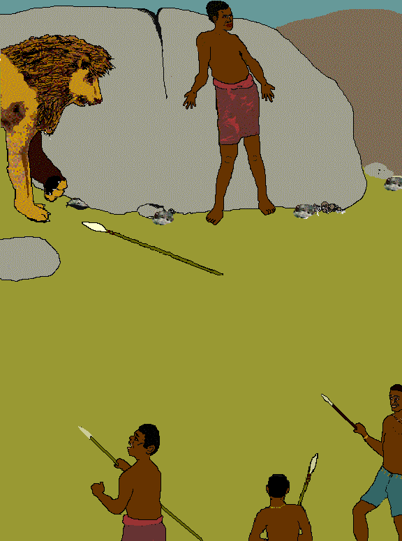 In This Broad Valleyby Raymond FosterThis story is based on an extraordinary vivid dawn dream I once experienced. I know what it feels like to be killed by a lion! One night I dreamed of my valley, where I had lived and died. It was linked with a person, of course. You know how it is when you feel for somebody: sympathy, and when sympathy grows deeper, empathy. And when a close friend or a relative pays you a visit and perhaps stays the night, you dream his dreams? Well, I do, anyway. You become one. That's how I know we are all linked, far beyond race or rank or religion. We are all one. The understanding has grown over the years, that we are all me. We truly are. Tarambikai, John, Sabande, Raymond, we are all individuals, yes; but we are all me. In the Land Rover I pored over the map with the interior light on. A track left the main gravel road and headed east, winding through the hills to link with several farms before eventually crossing the border into Mozambique. It was strange how a place could exert such a pull, even from the insubstantiality of a map. That broad valley was nearby, and I had to visit it. ![]() It was a dirt track that looked as if it could turn spiteful when the rains came. I have broken more springs and engine mountings than most, and I took the potholes cautiously. The old road was scarcely ever maintained. I believe it was once an important route, but very few vehicles came this way nowadays. Every now and then through gaps in the trees the rugged peaks of the distant mountain range showed palely outlined by the rising moon. The track climbed steadily into the foothills until suddenly as I reached the crest the moon came into view over the mountains and bathed my valley in its silvery glow. I decided on a likely spot below a small kopje, steered off the carriageway and switched out the lights. I got out and gazed for a while into the night, waiting for my eyes to get used to the soft glow. A nightjar trailing long pennant-wing plumes drifted like a ghost across the slope. A shadowy shape moved some yards away, gliding, and I strained my eyes and ears until a bushbuck barked in the distance, and the shadow answered. Somewhere across the valley a porcupine piped mournfully, and I felt the little hairs standing up on the back of my neck. This was my valley all right, though I had never set eyes on it before, not in this life. I knew it had once been my home. I rummaged in the Land Rover for my sleeping bag, found a mossy hollow near the kopje and bedded myself down for the night. Dawn came mistily, and in a forgotten surge of time I joined two old friends down there in the valley—on that morning, in that valley where I had lived all my life. In the morning light a few buildings clustered neatly, their tin roofs gleaming dully. This was the seat of government, and the home of that living wonder, the commissioner: one-man assembly, judge, jury, and court of appeal. The three of us approached the commissioner's house with some trepidation. He had a reputation; a hard man, whose interpretation of the law depended on how deeply he had drunk the night before. This must have been a bad morning for him, for the clerk looked very agitated as he asked our business and then made us wait in the dust below the stoep. When he finally called us in, instead of sending us to see the commissioner, one of the constables began to question us, very rudely, as though we were criminals. "Where have you been this morning?" "What do you mean, where have we been? We've been coming here!" "Have you been to this office before?" "You know we have. Lots of times." The more he questioned us, the stupider his questions seemed, until we started to get annoyed. Then, to get us really angry, he had the cheek to search us. We were only wearing our everyday short pants anyway. I could have punched him on the nose! There were others waiting in the office, and when the constable finally went out of the room I turned to them. "What's the matter with him, I wonder?" "Didn't you know? Somebody broke into the commissioner's house early this morning and stole his things—money—clothes—jewelry—I don't know what." I blew in disbelief. "He surely doesn't think we did it? We wouldn't be daft enough to come back here!" "He was the same with us. If we stole those things, we said, do you think we'd be daft enough to come back here? We told him that. He wouldn't listen." "Anyway," I said, "it's hardly likely to be a local lad." "Of course it's not a local lad! A jackal doesn't mess it's own den. It's obvious. Look through the window—that's the main footpath just down there. Every rogue in the country goes along there, sooner or later. Just there—look, by those trees." He pointed. We all knew very well where the path was, but we looked anyway. ![]() "Anyone could have come along, seen the buildings and sneaked over to see what he could steal. A local lad would have more sense. But I suppose they have to blame somebody, eh?" "Instead of accusing us, they should get us to help them track the thief." "And pay us a policeman's wage!" We all laughed at that, and a white man's voice from inside bellowed: "Quiet out there!" "Tula, tula," I whispered. "He sounds in a bad mood!" We were in two minds whether to go away and come back another day, but if we did that, they would think we had something to hide. When our turn came to see the commissioner, he was as unhelpful as could be. He knew our problem well enough, and he had promised to do something about it before. There was an old lion in the district that had turned man-eater. He wasn't even bothering to kill our cattle and goats now. People were easier prey. He would hide near a kraal at night and wait until someone came out first thing in the morning. Then a quick pounce, and he had his breakfast all ready to carry away into the bush. Sometimes he would hide near a footpath and catch somebody in broad daylight. That's why we were carrying spears. "He ought