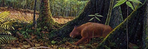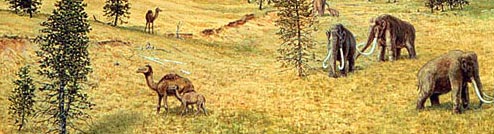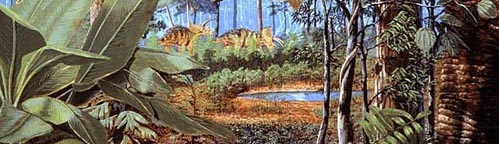 gather! ![]() I am indebted to the Denver Museum of Nature & Science for use of the following–I used only small portions, see the originals, they are enchanting and breathtaking–in the order of appearance in this letter. 1. Mammoths and camels wander among pine trees and prairie grass on a warm summer day during the Ice Age. Mastodon, horses, bison, lions, cheetahs, and giant ground sloths share this Front Range habitat. Painting by Jan Vriesen 2. Leaf Fossil, Kirk Johnson 3. Warm air and plentiful rainfall promote a bounty of plant life. Huge plant-eaters such as Triceratops browse in a forest of palm tree thickets and patches of paddle-leaved plants. Climbing ferns, herbaceous plants, and a variety of broad-leaved trees also grew here. Home to hundreds of turtles, birds, lizards, tiny mammals, frogs, and snakes, this landscape is also the turf of Tyrannosaurus rex...Painting by Gary Staab 4...Along the shoreline is a dank coastal forest containing herbaceous ferns (Astralopteris and Matonidium), broad-leaved trees (Sapindopsis, Liriophyllym, and Protophyllum) and strange conifers. A few Iguanodon dinosaurs wander down the beach, leaving their footprints on the rippled surface. Painting by Jan Vriesen 5. Large leaves and leaves with drip tips are indicative of high rainfall and warm temperatures. In the foreground, an obscure animal known only as stylinodontine taeniodont makes its way through the undergrowth composed of round-leaved herbs and cycad seedlings. Painting by Jan Vriesen |