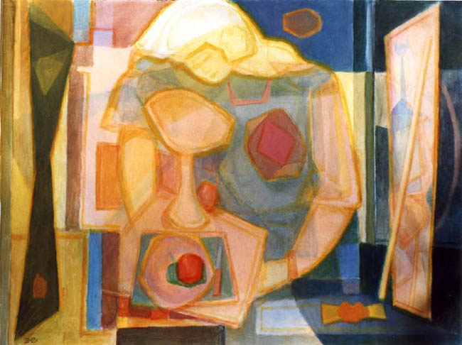 'Dream Sequence' 1977 27ins. x 29ins. Watercolour on board 'The effect draws the viewer into the painting, almost as if to enter the scene, turning as one would to experience the whole setting of that foreign yet familiar place of our dreams and imaginings. Hitchcock renders the places of our subconscious, which are easily recognized but impossible to describe.' —Lisa Crawford Watson Lord Clark said of Hitchcock that he is'many men thick', meaning that he has 'the power of recreating forms so that they become expressive of the artist's own epoch and yet keep a relationship with the past.' The painter and writer Julian Bell said of Hitchcock's work: 'Twentieth century culture marginalizes the idea of the sacred totally. Producing this light, that's more than natural, makes it quite possible to think about sacredness. He has placed himself as a painter at an original angle to his age.' Hitchcock's credo: The true function of the arts is to guide man towards his true destiny, towards a true understanding of himself and his inner nature. As we advance on the evolutionary scale, so must we proclaim that state of spiritual realization we have grasped or comprehended through whatever medium we may choose, rather like a bridge to help other people. The artist must cut across the spirit of the age. It is not his function to reflect the conditions of the age...but to follow the unmistakable voice within—the light that should be made known... My belief is that there is one over-riding creator, one supreme creator, that pervades everything— inanimate things, nature, as well as man himself. And it's simply a question of having the courage to completely surrender to that, and to lead a good life as far as is possible, so that one can develop inwardly. It's all a question of receiving what we feel inwardly.