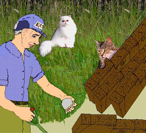 Signs & PortentsChapter 16 Men Make Them Fires on the Hearth![]() My name is Catwood. With a name like that, I suppose you already know who I am. Catwood is my human name, of course, we of the feline race also have our true names. But even if I told you my true name, you wouldn't be able to pronounce it, so just think of me as Catwood, or Catwood O'Leary, as that fiend who calls himself a cat doctor calls me. The O'Learys are my family, of course, I'm proud of that, picked them out myself. They're good people. It's just that you can never trust those guys in the white coats who call themselves cat doctors, if you know what I mean. The second they get a chance, they're jabbing a guy with this and poking him with that and that's just the least of it. They're pretty slick customers. They can subvert and hoodwink a man's own family right in front of his eyes! I remember that time I got that strange bad feeling a few years back. The next thing I knew—whammo! Miri had dumped me right on a table in front of that guy. Poke and pry, poke and pry, as if I didn't feel rotten enough. I told him straight out, "to but out." If you think that stopped him, you can think again, and me, at anything but my best. I had to let him have one right across the poker and prier. Then they ganged up on me, he had this other one in the back, and they wrestled me to the table. Then he did something really bizarre, but that wasn't the end of it. He played some weird number on the O'Learys, and they started poking those damned pills down my gullet every chance they got. It was over a week before I had them back to normal. How did I get on a subject like that? Phah! The least said the better, If you know what I mean. Oh yes, I remember now. I've been picking up on a different kind of strange bad feeling lately and it worries me. But it's not like the other kind at all, kind of in a different class completely, if you know what I mean. But it's big and it's bad, and it's kind of every place at once, if you know what I mean. The O'Learys can be so dense sometimes, I just don't know how I can get through to them on a complicated subject like this. You try talking to Miri and she listens, then she says something idiotic and puts some liver on your plate. Carl's not much better and he's getting hard to get hold of now that he's older. I've tried to get through to Robert, but the guy just seems to be out-to-lunch. I thought I was reaching him the other evening, but then he just sort of went somewhere and forgot the whole thing after I'd purred myself nearly hoarse. Well, that's the kind of bind I'm in, if you know what I mean. I don't think this is the kind of thing you should ignore, if you know what I mean. It's about time for my constitutional now, so I'll just check it out again. I'd better check out that machine, they brought here too. Did you see the size of that thing? But it doesn't fool me, it's just bigger than the other car, but it's a car all right. I can tell by the smell. And it's dangerous, I wouldn't go near it, but with the family and Robert going into it all the time, I'd better see what it's been up to lately. They tried to get me inside the thing, but I told them "no way." That contraption is nothing to play around with, I know this by feline instinct, you see. Humans find those contraptions fascinating and there's usually no stopping them. Well, I always go down the backstairs, you just hop through the window here over the sink (Miri always leaves it open just for that reason) onto the porch and down you go. You can use the door too, if you like, but its faster this way. "Hmmmm!" Well, I don't feel it now. Let's hope it's taken a hike, or something, and is gone for good. God! There's Jessup, he's a real sweet guy. I'll just go over and say hello, he always has a good word for a guy. Sometimes he has a worthwhile snack too, he's real thoughtful that way. What's he doing? Digging in the ground? God, that's fascinating! Trust old Jessup to come up with something real interesting to do. "Hi, Farlan! How's it going?" (Stone deaf, you know, but he radiates like a house afire. Lot's of the old prana as the Hindus would say.) Nothing like a little digging in the earth to straighten out your head. God, he thinks he's building a bomb shelter. Well, it's a wonderful excuse to dig in the ground and that's the main thing. Jessup's got this "only one" thing in his head, but he's a real swell guy, anyway. I really should spend more time with him, but a man like myself has a busy schedule. Ten humans in this territory and one cat, if you know what I mean. Damn, here comes that stupid Shirley from next door! Well, too late, she's already seen me. Jessup will "kitty, kitty" her until she comes over anyway. Might as well go meet her. "Hi, Shirl, how's the girl?" "You won't really go!" "Hell, I won't! If if weren't for Carl and Miri, I'd be long gone right now." (I told her yesterday that this awful feeling, I was telling you about, was getting to be too much, and that I was leaving and she ought to do the same.) "You won't!" "Will!" (O God, why argue? She's the original brainless nincompoop and determined to have her ![]() own way. She's real sneaky too, always tries hard to find a way to get in the last word.) But she feels it too, I can tell. She just tries to pretend it doesn't bother her. Naturally, she would be the first one under the bed if it really broke loose. Ha! Speak of the devil, it's back! Feel how it creeps and slides along the ground? It chills your spine doesn't it? It's wholly and completely "other," neither human or feline, or anything else in the known world that I've ever felt. No smell to it, but it comes and spreads out everywhere. Brace yourself, it can crawl right into your bones and gnaw at them when it's bad like this. Look at that! It's especially raw and strong today and even Shirley is starting to swing her tail, she's giving up trying to pretend she's not nervous about it. Uh huh, and she's h